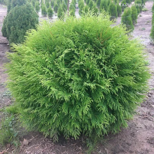 Туя шаровидная Литл Чемпион - шаровидная туя. Растёт медленно, к 10-ти годам диаметр 50 см. Ветви плотные. Хвоя светло-зелёная. Рекомендуется для посадки в каменистых и вересковых садах, контейнерах. Место солнечное или полутенистое, почва влажная.