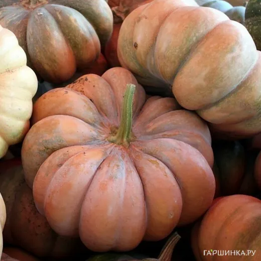 Среднеранний сорт мускатной тыквы. Мускатная тыква - самая вкусная. Она сладкая и ароматная, её можно есть сырой (например, в салате), а можно готовить из неё кашу, пюре, оладьи, пироги и даже сладкие кексы для детей. В Индии из неё даже делают халву. Мускатные тыквы еще и самые экономичные - внутри практически одна мякоть и мало семян. Форма плоско-округлая сегментированная с четко выделенными ребрами. Цвет - оранжевый, в верхней части плода - с серо-зелеными полосами. Мякоть красивого темно-оранжевого цвета. Вес около 5 кг. Для мускатной тыквы необходимо выбрать самое солнечное место на участке. Оно должно быть с плодородной почвой, богатой органикой. В средней полосе России тыкву необходимо выращивать через рассаду. Сразу после уборки мякоть плода имеет светло-оранжевую окраску и легкий мускатный аромат. При хранении усиливается мускатный аромат, а также увеличивается содержание сахара.
