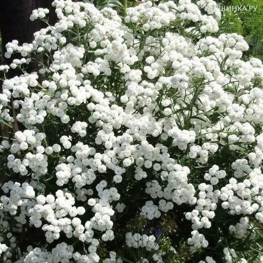 Тысячелистник Зе перл - длительно цветущий неприхотливый многолетник. Высота 60 см, размер соцветия 10 см. Цветки белые, немахровые. Соцветия крупные, в форме зонтика. Листья узкие тёмно-зелёные, пильчатые.