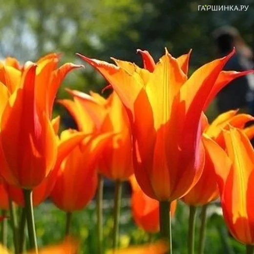 Тюльпан Балерина 5 шт Изысканно-утонченный сорт. Цветки этого тюльпана по форме напоминают лилии. Они элегантные, удлиненные, с отогнутыми наружу узкими и длинными лепестками. Их окраска – красновато-оранжевая. Она несколько усиливается по мере цветения тюльпана. Продолжительность цветения – около 10 дней. Период цветения – конец весны. Высота растения – 55 см. Колыханье стройного цветка на ветру подобно танцу прелестной балерины в оранжевом одеянии.