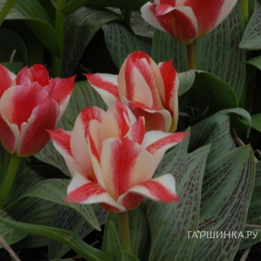Тюльпан Грэйгс Хэппи Грейга 5шт. вырастает высотой до 25 см. Бутон ярко-розовый, с широкой белой каймой, эффектно контрастирует с листвой, украшенной красно-коричневыми штрихами.
