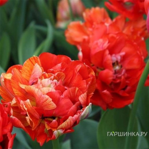 Тюльпан Гудошник Дабл махровый 5шт - это распространенный сорт махровых поздних тюльпанов, вегетационный период которого колеблется от 80 до 120 дней. Выращивать эти растения можно как в открытом грунте, так и в контейнерах. Цветок большой со светло-оранжевыми с красными штрихами лепестками, полный. Стебель крепкий, около 45 см в высоту. Растение имеет едва уловимый приятный запах.