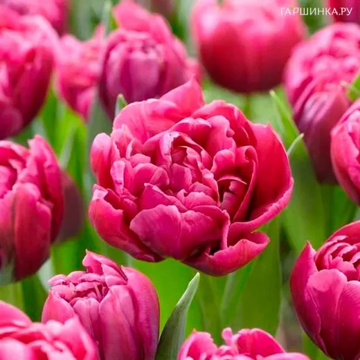 Тюльпан Маргарита махровый ранний 5шт - Сорт с пионовидными бутонами около 10-11 сантиметров в диаметре, высота бутона – около 7 сантиметров. Лепестки пурпурные. Края чуть бахромчатые.