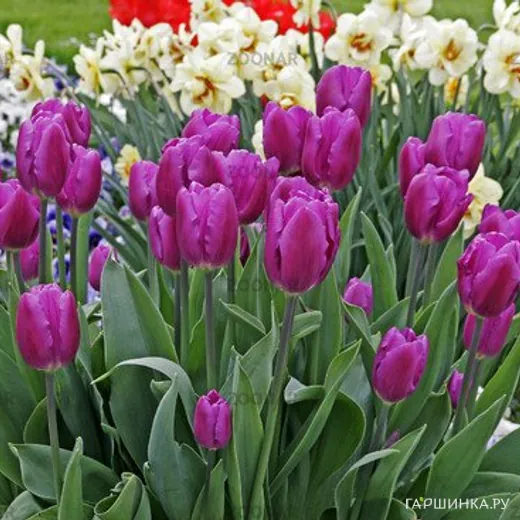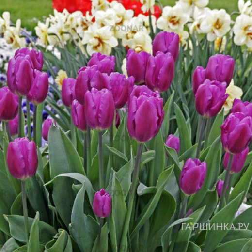 Тюльпан PURPLE PRINCE цветет в апреле, образуя крупный, пурпурный бокал высотой до 10 см. Продолжительность цветения 10-15 дней. Высота тюльпана PURPLE PRINCE 30-40 см.