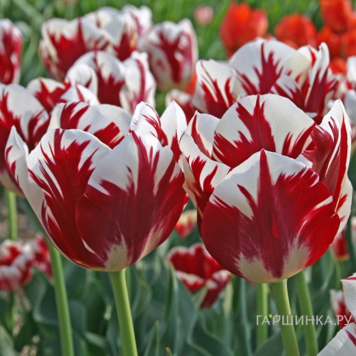 Тюльпан Гранд Перфекшн Триумф 5шт Высота растения до 55 см. Цветок бокаловидный, крупный. Окраска цветка: белый с винно-красными перьями. Высота бокала цветка до 6- 8 см.