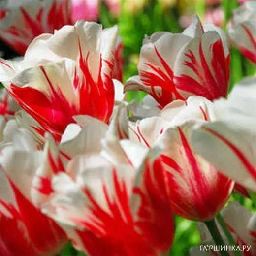 Тюльпан Сорбет Триумф 5шт. - многолетнее луковичное растение высотой 45 см, с необычными завораживающими цветками высотой 10–12 см. Белоснежные лепестки с розовыми штрихами образуют восхитительный бокал.