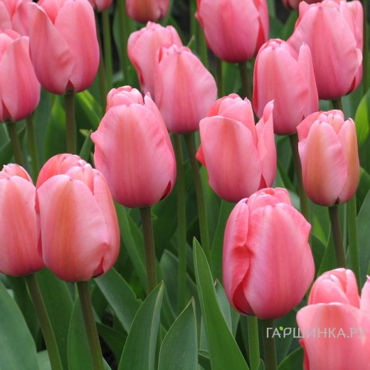 Тюльпан Ван Эйк Дарвина 5шт - один из классических сортов тюльпанов, он создан голландскими селекционерами в 1995 году. Назван в честь династии нидерландских художников XV века. По международной классификации сорт относится к классу «дарвиновы гибриды». Тюльпаны этого вида отличают высокий, до 70 см, рост, крупные бокаловидные цветки на мощном цветоносе, по форме близки прямоугольнику (не чашеобразные или овальные, как другие виды). Диаметр цветка достигает 8-10 см, лепестки чистого нежно-розового или красноватого оттенка с более тёмными краями. Сорт отличается ранним цветением – при отсутствии погодных аномалий в средней полосе России тюльпан распускается в начале мая.