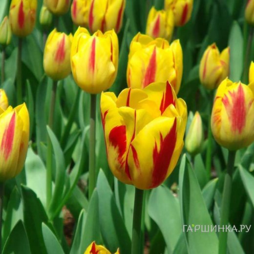Тюльпан Вашингтон 5 штЯрко-желтый окрас с уверенной красной полосой по центру лепестка. Высотой 40-55 см.