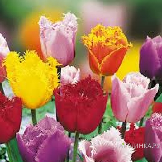 Тюльпаны бахромчатые микс 5шт Смесь сортов бахромчатых тюльпанов . Высота от 50 до 80 см. Их особенность игольчатые края похожие на иней. Бутоны достигают размера 15см. Период цветения приходится на апрель-май.