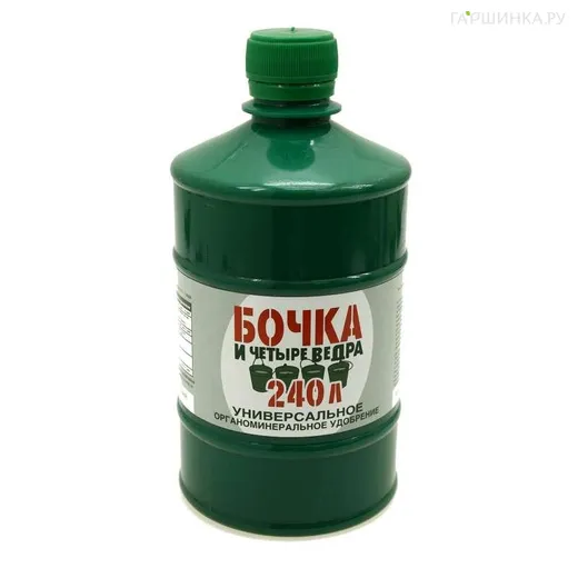 Удобрение универсальное Бочка и 4 ведра - комплексное жидкое удобрение, содержит микроэлементы, применяется для всех типов почвы, и в любых климатических условиях. Срок внесения зависит от состава почвы. Легкие по составу почвы удобряются весной, глинистые и суглинистые рекомендуется удобрять осенью. Удобрение применяется в качестве водного раствора.Следует соблюдать технику безопасности. Норму удобрения выбирают согласно инструкции, в зависимости от вида подкормки, и растений, подлежащих к обработке.