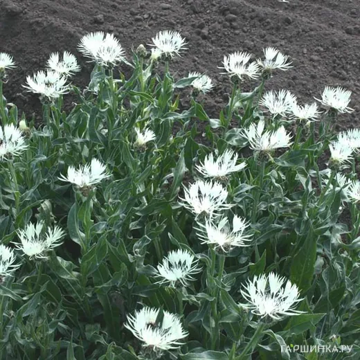 Василек Centaurea Montana Alba белый NEW! Соцветия крупные, белые. Куст высотой до 80-90 см. Стебли ребристые, с белым неравномерным опушением. Диаметр цветка 7 см. Период цветения июль.