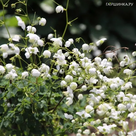 Цветки простые белые, с кремовыми тычинками. Листья серо-зеленые, перисто-рассечённые, ажурные. Высота до 120 см.