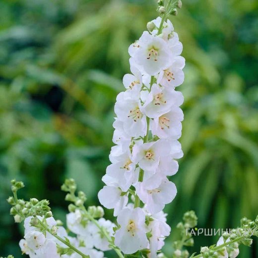 Вербаскум (коровяк) Вайт Домино - высота растения до 100 см, цветок белый. Многолетние растения 30-100 см высотой. Стебли прямостоячие, простые, вверху немного ветвистые. Прикорневые листья продолговато-яйцевидные. Стеблевые - немногочисленные, мелкие, продолговатые. Цветки одиночные, на длинных цветоножках, расположены в длинных верхушечных ветвистых кистях. Цветет в июне-августе.