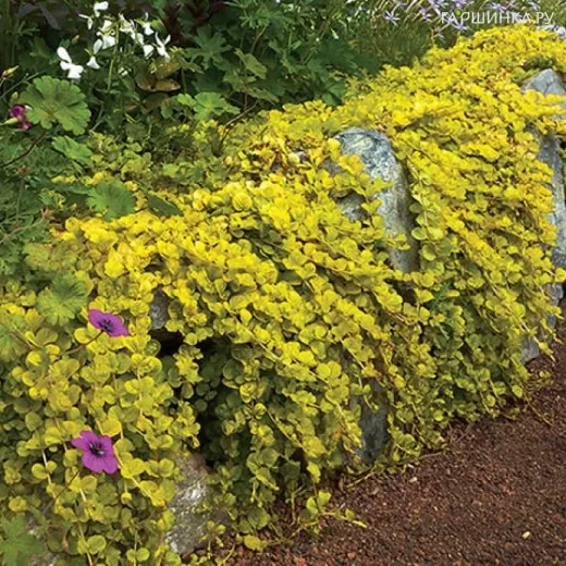 Вербейник Ауреа монетчатый - многолетнее растение с лежачим стеблем до 30 см длиной. Листья на коротких черешках, расположены супротивно, овальные, до 2,5 см длиной. Цветки одиночные, пазушные, желтые, до 2,5 см в диаметре. Цветет 15-20 дней. Начало цветения зависит от условий освещенности участка, на хорошо освещенных — цветение приходится на июнь, притеняя или высаживая на затененных местах, можно влиять на сроки цветения. В природе цветущие растения можно встретить с конца мая по август. Отличительной чертой этого вида является его способность образовывать ковровый покров не только на горизонтальной поверхности, но и на достаточно крутых склонах. Весьма декоративны "наплывы" его побегов сверху на отвесных поверхностях. Прекрасно размножается вегетативным путем, имеет очень большой коэффициент размножения. Размножать можно отделением укорененных побегов в течение всего сезона. Растение неприхотливое. Хорошо растет на влажных местах на солнце и в полутени. Довольно хорошо переносит засуху.