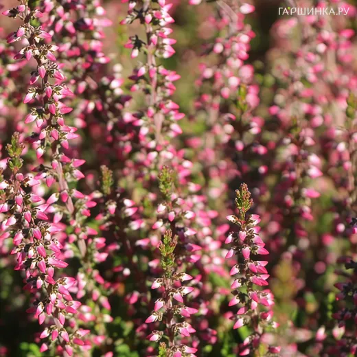 Вереск Энджи - декоративный многолетний кустарник. Высаживается как почвопокровное растение. Подходит для оформления альпинария. Предпочитает расти на солнечных участках с плодородным грунтом. Отличается медленным ростом. Побеги растут вертикально. Высота растения до 60 сантиметров. Зацветает вереск осенью, в сентября-октябре. Цветки красивого карминово-красного оттенка. Соцветия мелкие, расположены по всей длине стебля. Листья насыщенного зеленого оттенка.