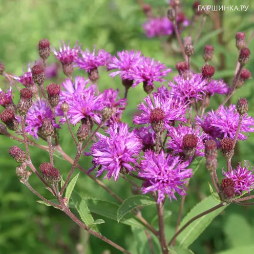 Вернония пучковатая - многолетнее травянистое растение. Период цветения: июль-октябрь. Высота взрослого растения до 200 см. Место для высадки - солнце, полутень. К почве не требовательно, но лучше растет на глинистой, суглинистой. Лист длинный, овальный, большой, темно-зеленый, покрыт волосками. Соцветия пурпурно-фиолетовые, собраны в мягкой метелке. Светлолюбива. Морозостойкость хорошая.
