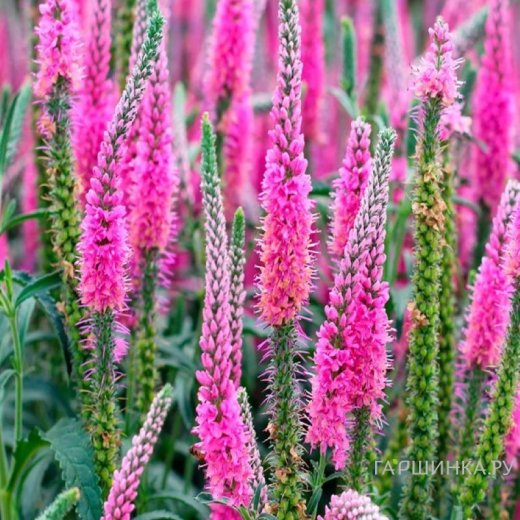 Вероника колосковая Анниверсари Нью Роуз - неприхотливый многолетник. Цветки маленькие, розовые, в густых соцветиях. Цветение в июне-июле. Листья серовато-зелёные, узколанцетные, зазубренные по краям. Высота 35 см. Идеально подходит для бордюров и контейнеров. Место солнечное или полутенистое. Почва влажная, хорошо дренированная. Зона 4 (до -34º).