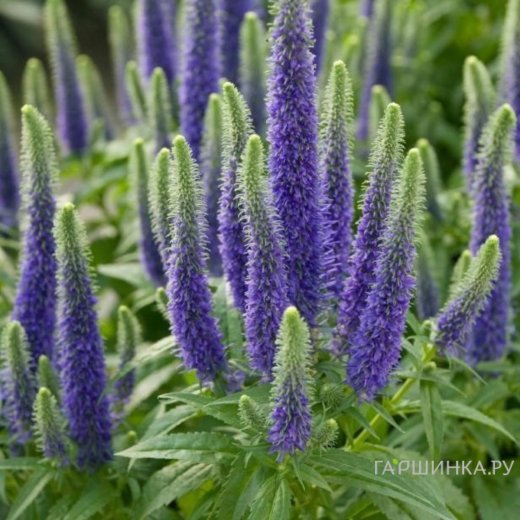 Вероника колосковая Санни Бордэр Блу - хорошо прорастают на открытых солнечных территориях или в полутени. Основным преимуществом растения является нетребовательность к плодородию почвы. Главное, чтобы она не была влажной длительное время. Еще сорт засухоустойчив. Многолетник вырастает до 35-50 см в высоту. Его составляют крепкие прямые побеги с продолговатыми морщинистыми листьями изумрудного цвета. Колосовидные соцветия имеют изящную форму узких стрелок. Их составляют маленькие сине-фиолетовые цветочки. Словно яркие свечи, они прекрасно смотрятся в альпинариях, цветниках, на газонах. Цветет беспрерывно с июня до глубокой осени.