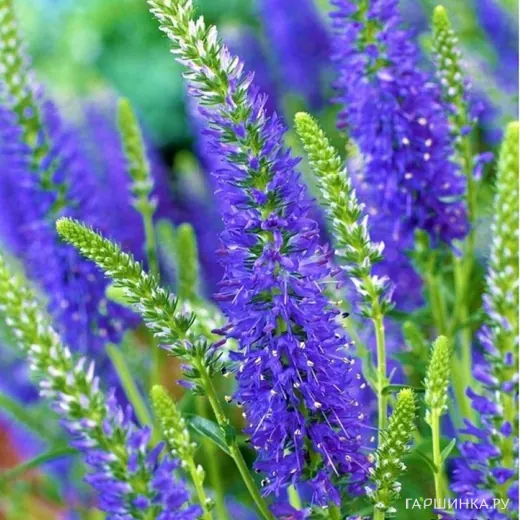 Вероника колосковая Нана Блаутеппич - цветки мелкие, синие, в густых соцветиях. Цветение в июне-июле. Листья зелёные зубчатые. Высота 20-25 см, ширина 30 см. Подходит для посадки в контейнерах. Место солнечное или полутенистое. Почва влажная, хорошо дренированная. Зона 4 (до -34º).