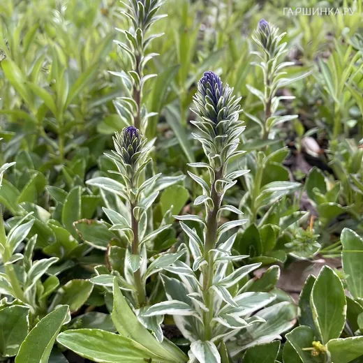 Вероника Вариегата горечавковая - декоративный многолетник с бело-окаймленными листьями, образующий компактные подушковидные кустики высотой 10–25 см (до 40-50 см с цветоносами). Сорт отличается весенним розоватым оттенком каймы, цветет бледно-голубыми цветками с июня около 3 недель, зимостоек, светолюбив, но переносит полутень. Морозостойкий многолетник (зона 3-4, до -35°C),