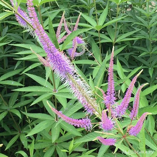 Вероникаструм Темптейшен - многолетнее травянистое растение. Высота до 130 см. Мелкие лиловые цветки собраны в длинные колосовидные соцветия.