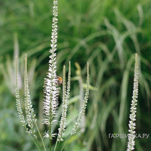 Вероникаструм виргинский Диана - многолетнее травянистое растение. Растения до 130 см высотой. Листья ланцетные, сочно-зеленые, расположены мутовчато. Цветки белые или голубые, собраны в метельчатое соцветие до 15 см длиной. Цветет с июня по август.