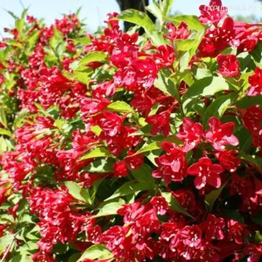 Вейгела Ред Принц. - Декоративный листопадный кустарник высотой и шириной 1,5 м. Ежегодный прирост 20 см. Листья ярко-зеленые, эллиптические. Цветки колокольчатые, малиново-красные, цветет в мае-июне, и повторно в августе-сентябре. Предпочитает солнечные места, может расти в полутени. В тени не цветет, и побеги не одревесневают. Почвы должны быть плодородными, влажными, хорошо дренированными. На сильно переувлажненных почвах не цветет. Лучше выбирать закрытые места от ветров, потому что листья и цветы могут повреждаться от ветра. На зиму необходимо укрывать растение. После листопада кусты связывают и пригибают к земле, укрывают лапником или лутрасилом. Весной удаляют поврежденные побеги. Обрезку производят каждые 2-3 года сразу после цветения. Используют в одиночных и групповых композициях.