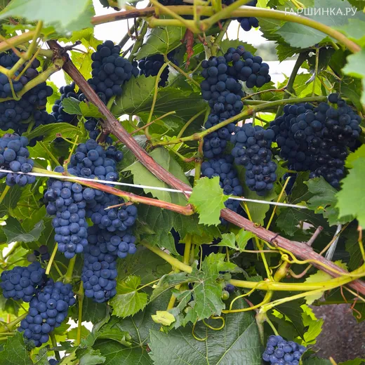Виноград Леон Мийо — Темно-фиолетового цвета. Ягоды плотные, овальной формы, удлиненного вида. В засуху виноград поливать необходимо 2-3 раза в неделю в зависимости от высыхания почвы. Куст растет, полив уже требуется не такой интенсивности, но количество воды в один подход увеличивают. За первый год жизни этому сорту винограда достаточно и 10 литров/раз. Виноград может выдержать до –27°С.