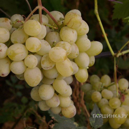 Виноград Лора столовый - Куст среднего размера, покрыт тёмно-зелёными пятилопастными листьями. Количество плодоносных побегов может доходить до 80% от общего числа. Цветки преимущественно женского типа, тем не менее виноград опыляется хорошо. Грозди рыхлые, конической формы, достигают в длину 40 см. Для сорта характерно образование одинаковых по размеру и массе гроздей, поэтому их вес приблизительно равен 1 кг, но отдельные экземпляры могут весить 2,5 кг. Ягоды овальной формы, светло-салатного оттенка с восковым налётом, весом 6–10 г. Мякоть сочная, плотная, по мере созревания приобретает мускатный привкус.