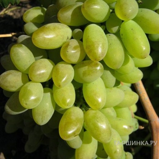 Виноград Элегант плодовый - это сверхранний сорт великолепного по своим вкусовым качествам продукта садоводческого хозяйства. Период окончательного созревания составляет 100-110 дней от распускания почек. Виноградный крупномер Элегант имеет средне- или слаборослые кусты, а также обоеполые цветки. Кисти цилиндроконической формы, слегка плотные, крупные (масса грозди 300-500 г). Виноградины большие (29х20 мм) сосковидные или овальные, бледно-зеленые. Обладают гармоничным мускатным вкусом. Достоинства сорта: побеги вызревают хорошо; совместим со многими подвоями; устойчив к морозам, серой гнили и милдью.