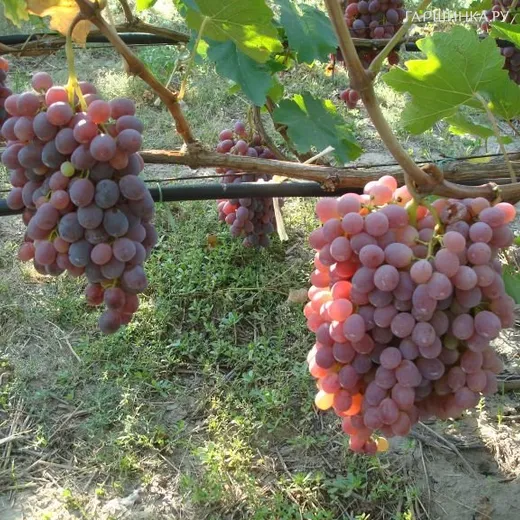 Виноград плодовый Розовый жемчуг. Сорт раннего срока созревания (110-120 дней). Универсального назначения. Куст среднерослый. Грозди конические, крупные и очень крупные средняя масса грозди 400-500 грамм. Вызревание побегов хорошее. Урожайность средняя. Грибковыми болезнями повреждается слабо. Виноград используется в основном для потребления в свежем виде. Сахаронакопление высокое - 19-26%, кислотность 5-9 г/л. Ягоды крупные, розовые, отличаются прекрасными вкусовыми качествами, имеют мало косточек и нежесткую кожицу. Единственным его минусом является невысокая транспортировочная способность. Неоспоримым достоинством сорта является его отличная зимостойкость (до -30°С), устойчивость к засухам и слабая подверженность традиционным грибковым заболеваниям винограда.