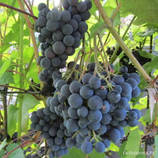 Виноград Журавлик - сверхраннеспелый сорт. Куст сильнорослый, рост быстрый, может использоваться в качестве декорирования , молодой лист красный. Лоза высокорепродуктивна. Гроздь коническая, среднеплотная, 350, гр. Ягода округлая, темно-фиолетовая, мелкие1-2 гр, восковой налет. Кожа плотная, но съедается легко. Мякоть ягоды сочная, кисло-сладкая, внутри несколько косточек, имеет мускатный аромат. Сорт винный, урожайность и транспортабельность очень высокая.