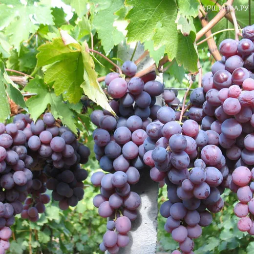 Виноград Кардинал столовый - Кусты отличаются большой силой роста, достигают высоты 3 м. Урожайность сорта может быть очень высокой, так как на каждом растении образуется до 70 плодоносных побегов, на каждом из которых в среднем образуется по 1–2 кисти. Лозы вызревают на 1/2–2/3 длины. Зелень густая, листья крупные, блестящие, без опушения, с треугольными зубцами по краю. Цветки самоопыляющиеся. Гроздья цилиндроконической формы (иногда с крылом), довольно крупные, но рыхлые. Именно из-за рыхлости кисть при длине 25–30 см имеет массу 300–600 г.