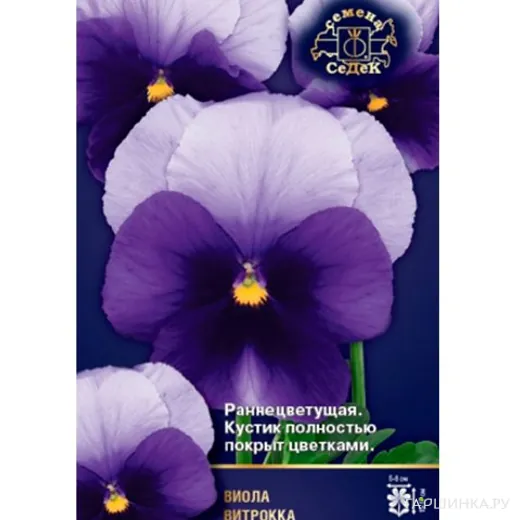 Виола Виттрока Джоли (Седек), 0,5г - Двулетнее травянистое растение семейства Фиалковые. Цветки диаметром 5-6 см, бархатистые, лепестки бело-сиреневые, у основания трех нижних – крупные черные пятна. Кустик компактный, высотой 15-17 см, полностью покрыт цветками. Виолы серии «Петит» отличаются ранним длительным и продолжительным цветением, с весны до поздней осени. В южных регионах славится своей способностью цвести в течение зимнего периода, сохраняя все свои качества. Растение хорошо переносит пересадку в цветущем состоянии, прекрасно растет на солнечном месте и в полутени. Для активного цветения требуется регулярный полив и подкормки азотными удобрениями после пикировки и полными комплексными удобрениями в течение всего лета с интервалом 10-14 дней. Необходимо удалять отцветшие цветки. Используя правильно агротехнику - эта особенная, нежная и романтичная виола не оставит вас равнодушными, она будет роскошным украшением для вашего балкона и садовых ваз, клумб и рабаток.