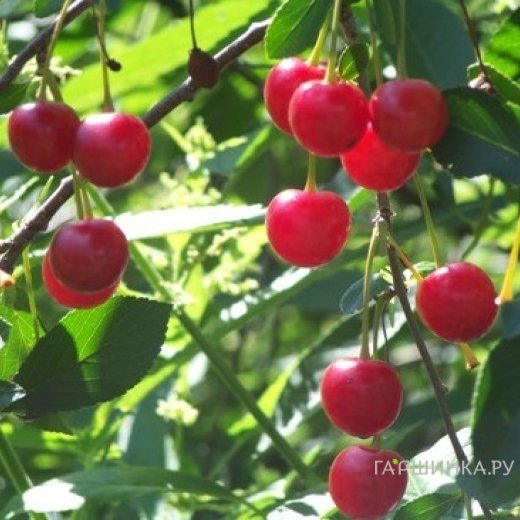 Вишня Нижнекамская - Происхождение сорта – сеянец Морели ранней от свободного опыления. Оригинатор – Татарский НИИСХ. Авторы: А.М. Тверитинов, Л.А. Севастьянова. Введен в Государственный реестр в 1998 г. по Средневолжскому региону. Куст слаборослый; крона широкоокруглая, густая, сильной облиственности; лист обратнояйцевидный, узкообратнояйцевидный, зеленый, без антоциана; верхушка заостренная, основание острое, зазубренность края двоякогородчатая, поверхность пластинки матовая, слабоблестящая, плоская; черешок средний, тонкий, со слабым антоцианом у основания; цветков в соцветии среднее число (4-6), мелкие, лепестки соприкасаются, белые. Тип цветения и плодоношения смешанный. Плод: масса 3,0 г, высота 11 мм, ширина 18 мм, толщина 16 мм, форма широкоокруглая, воронка мелкая, верхушка округлая; окраска вишневая, темно-красная, окраска мякоти темно-красная, окраска сока темно-красная, плотность мякоти средняя; плодоножка короткая (35 мм), тонкая; косточка широкоовальная, масса 0,2 г, малая, 6,7% от массы плода, светло-коричневая, верхушки овальная, основание широкоовальное, отделяемость от мякоти хорошая. Внешний вид плодов удовлетворительный; сочность мякоти сильная; вкус хороший, кисловато-сладкий. Плоды универсального назначения. Срок цветения – 1-2 декада мая; созревание плодов раннесреднее, равномерное, возраст вступления в плодоношение средний (на 3-4 год после посадки); долговечность растений 18-20 лет; частично самоплодный.