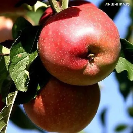 Ствол без больших и раскидистых ветвей и побегов. Плоды: с кисло-сладким вкусовым оттенком, правильной округлой формы. Аромат приятный, терпкий. Окрас насыщенный румяный. Мякоть сочная, светлая.