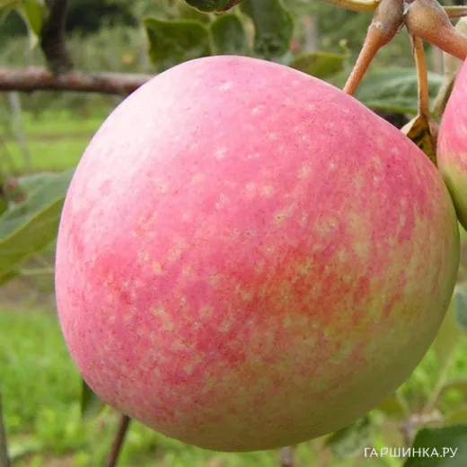 Это сильнорослое дерево с высокой разветвленной кроной. Имеет плоды средней величины (около 70-80 г), шаровидные, слаборебристые. Цвет плодов светло-зеленый с красноватым румянцем, покрывающем, как правило, все яблоко. Мякоть белая или розоватая, сочная и сладкая. Плодоносить яблоня начинает спустя 3-4 года после посадки. Сбор урожая - в конце июля-начале августа. Хранятся плоды около 20 дней. Особенность сорта - периодичность плодоношения. Сорт неприхотлив к условиям выращивания, высокозимостоек, устойчив к парше.