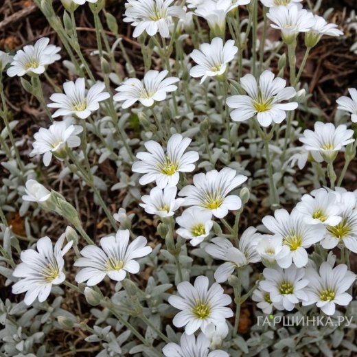 Ясколка войлочная - Высота растения 20-30 см, листья мелкие, серовато-войлочные, цветки белые до 1 см в диаметре. Цветение в мае, в течение месяца. Подходит для срезки, долго стот в воде, так же для цветников, бордюров, миксбордеров.