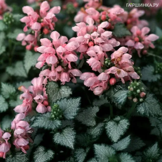 Яснотка пятнистая Пинк Пьютер - многолетний почвопокровник, высотой 15-20 см. Его стебли разветвляются у основания и покрыты мягкими волосками. Листья овальной формы. Окрас пластин серебристо-белый, с темно-зеленой окантовкой. Цветы бело-розового оттенка, собраны по 10 штук в мутовки. Бутоны появляются на растении в мае-июне, в зависимости от региона выращивания.