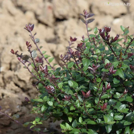 Жимолость блестящая Пурпл Мист - густой кустарник с плотной листвой. Высота 90 см, ширина 150 см. На концах его побегов в начале лета появляются мелкие многочисленные розоватые цветы, которые вскоре превращаются в фиолетовые ягоды. Плоды несъедобны, но декоративны. Из жимолости блестящей получаются красивые живые изгороди. Жимолость светолюбива, но может выдерживать легкую тень. Растет на любых почвах, достаточно обогатить их питательными веществами и дренировать.