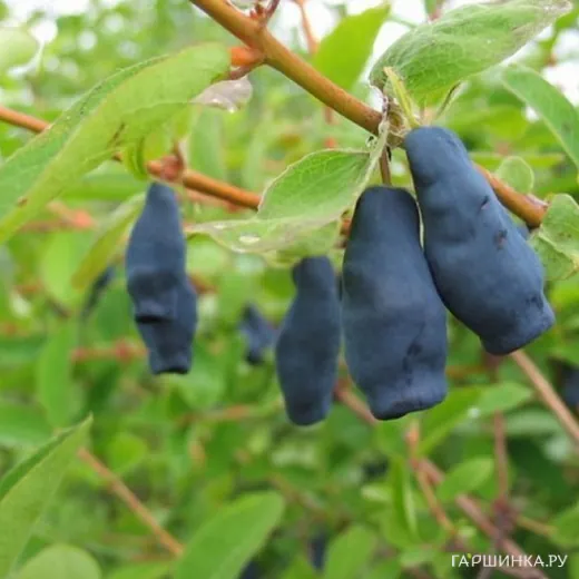 Жимолость Фиалка – съедобная. Листопадный многолетний кустарник округлой формы. Высота 1,5 м, диаметр 1,5 м. Побеги прямые, зеленовато-бурые. Листья плоские. Самобесплодный. Ягода веретеновидная, темно-фиолетовая, валик у верхушки, сочная, 1,5г. Вкус насыщенный, сладкий, с небольшой долей кислинки, оставляет послевкусие. Опылитель Амфора, Голубое веретено, Виола.