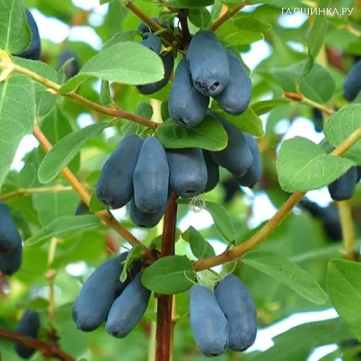 Жимолость Индиго Джем - Является одной из самых урожайных разновидностей жимолости и рекомендована к выращиванию в промышленных масштабах, так как ягоды этого сорта отличаются высокими вкусовыми и товарными качествами. Куст средней высоты, до 1,5 м., шириной 1,2 м. Ягоды крупные, массой 1,5–2 г. каждая, овальной формы, окрашены в голубой цвет. Отличительной чертой этого сорта является то, что ягоды после созревания долго сохраняются на ветках, не осыпаясь. Отличается повышенными показателями зимостойкости. Без укрытия кусты хорошо переносят морозы до -35°С. Сорт скороплоден. В фазу плодоношения вступает уже на второй год после посадки. Созревают ягоды во второй половине июня. Отдача урожая растянута до начала августа, так как плоды поспевают неравномерно. Хорошие опылители: Хани Би, Аврора, Бореалис, Дуэт.